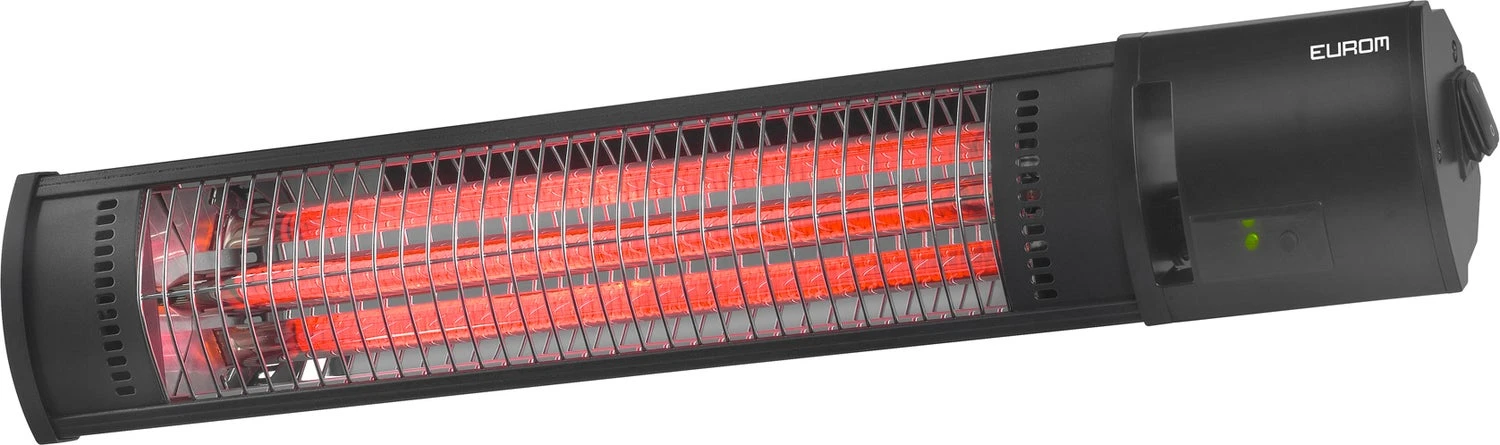 Als je ook op koude avonden buiten wilt zitten dan is deze Eurom terrasheater Golden Shadow 1500 een goede aanwinst voor je tuin en terras. De lamp straalt weinig licht uit maar geeft wel veel warmte af. De terrasverwarming kan makkelijk opgehangen worden. De Golden Shadow 1500 werkt elektrisch en is spuitwaterdicht. De terrasheater heeft een bereik van 15-20 m² en houdt zo tijdens een gezellige avond op het terras iedereen warm. De terrasheater beschikt over twee standen en kan met een afstandbediening bediend worden.