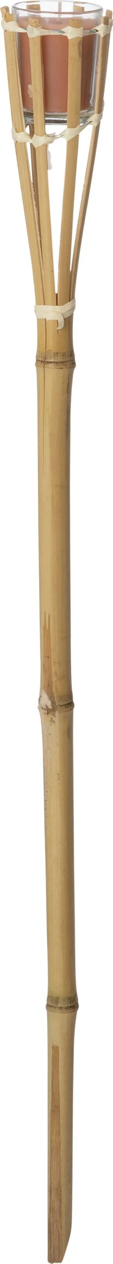 Geef je tuin of terras een extra warme sfeer met deze kaars tuinfakkel Torcia van Intratuin. De fakkel is gemaakt van naturel bamboe en heeft bovenop een oranje kaarsje in glas. Door de onderkant kan de tuinverlichting makkelijk in de grond gezet worden. De fakkel geeft een sfeervol effect voor een zwoele zomeravond in je tuin of op het terras. De heerlijke citronella-geur maakt het helemaal af. De lengte van deze fakkel is 76 cm. De kaars heeft een brandduur van ongeveer 4 uur. Combineer meerdere kleuren voor een prachtig verlichte tuin!