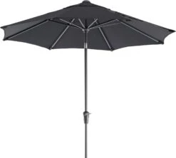 Intratuin parasol Trinidad is een ronde, kantelbare en smaakvolle parasol in de kleur zwart. De parasol is voorzien van 220 grams waterafstotend polyester doek met beschermingsfactor 80+ en 8 stalen ribben. Eenvoudig te kantelen in de gewenste richting tegen de zon voor optimale bescherming.