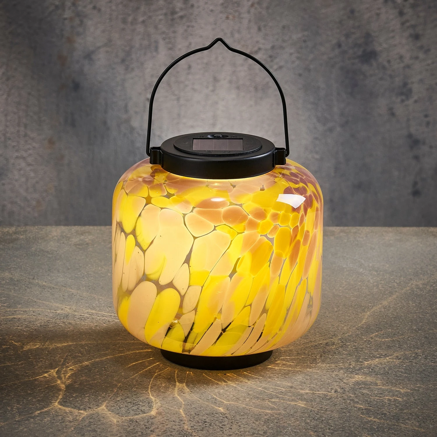 Zet hem overdag in de zon en geniet ’s avonds van het gezellige, warmwitte licht dat deze lantaarn van Luca Lighting biedt! Hij is gemaakt van transparant glas, met een stijlvol, geel printje, en zwart polypropyleen. Door de platte onderkant kun je hem op een tafel zetten, maar door de hendel de lantaarn ook ophangen. Heb jij al een plekje bedacht? De afmetingen zijn H18,5 x Ø16,5 cm.