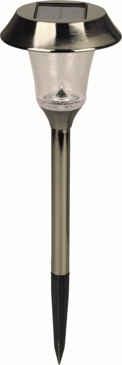 Deze Solar Intelligente Hybride tuinlamp “Georgia” van Luxform met zijn warm witte LED biedt u een gelijkmatige lichtstroom, waarmee u het hele jaar door kunt genieten van betrouwbaarheid en veiligheid! Deze tuinlamp, die 34 cm boven de grond uitsteekt, heeft een hoger aantal lumen (maar liefst 25!) In vergelijking met een normale zonnelamp, waardoor hij in de winter langer brandt. Dankzij de aardpen kan de lamp gemakkelijk in de tuin worden geplaatst. De echte glazen lens, die veel kleine luchtbelletjes bevat, zorgt ’s nachts voor prachtig licht. Plaats de lamp bij de ingang, op het tuinpad of in een bloembed.