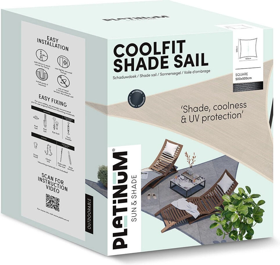 Creëer een aangename en koele schaduwplek in jouw tuin, terras of balkon met dit Platinum schaduwdoek uit de Sun & Shade Coolfit serie in de kleur wit. Dit hoogwaardige schaduwdoek in de vorm van een vierkant biedt niet alleen effectieve bescherming tegen de zon, maar voegt ook een stijlvol element toe.