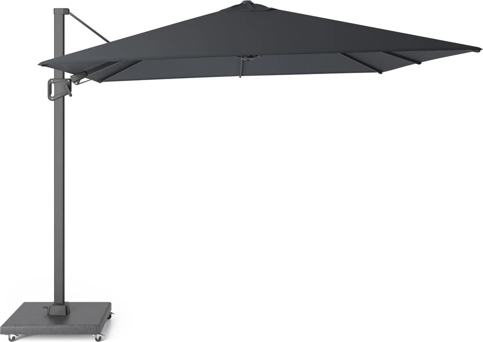Wil jij deze zomer ook een lekker beschut plekje creëren in jouw tuin? Met deze luxe Merida Plus zweefparasol is het kinderspel om je te beschermen bij felle zon. Deze dubbele kantelbare zweefparasol uit de serie Merida heeft een modern design met sterke stalen baleinen voor een optimale stabiliteit. De parasol heeft een mast van aluminium dat is voorzien van 240 grams polyester doek in de kleur antraciet. Het doek heeft een lichtechtheid van 5-6 waardoor het goed bestand is tegen verkleuringen door invloed van zonlicht en is tevens water- en vuilafstotend.